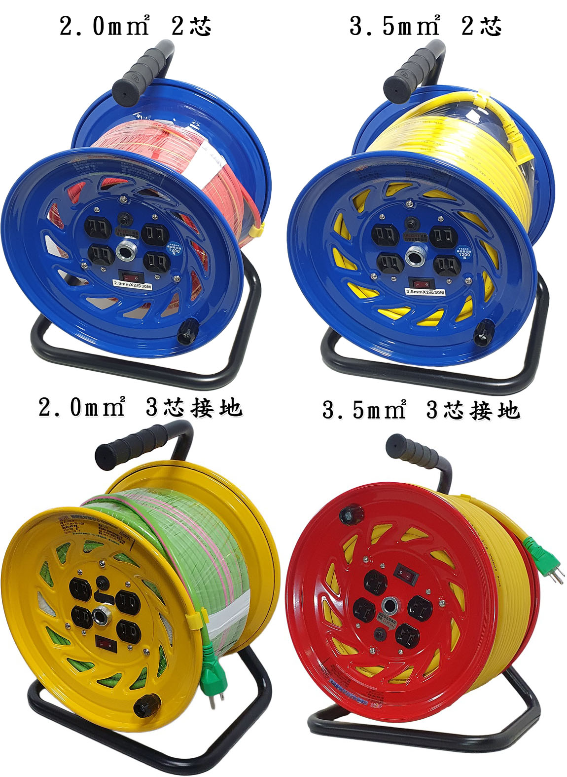 | 品名:延長線輪座 規格:一開關(ON/OFF)四插座 線徑:VCTF2.0㎟(0.26×37)×3芯(接地線) 長度:20、30、50 公尺 外徑:9.2mm 負載:11A / 125V / 1210W / 60HZ 電線材質:PVC、銅 重量:5800、7300、10500 公克 才積:28.8cm × 25cm × 37.5cm 字號:R55369 |