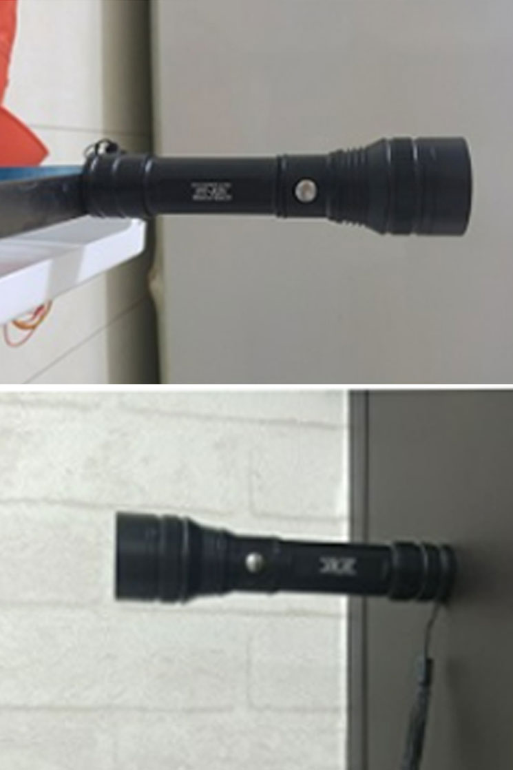 可將手電筒固定於腳踏車架上,利於夜間行車照明。